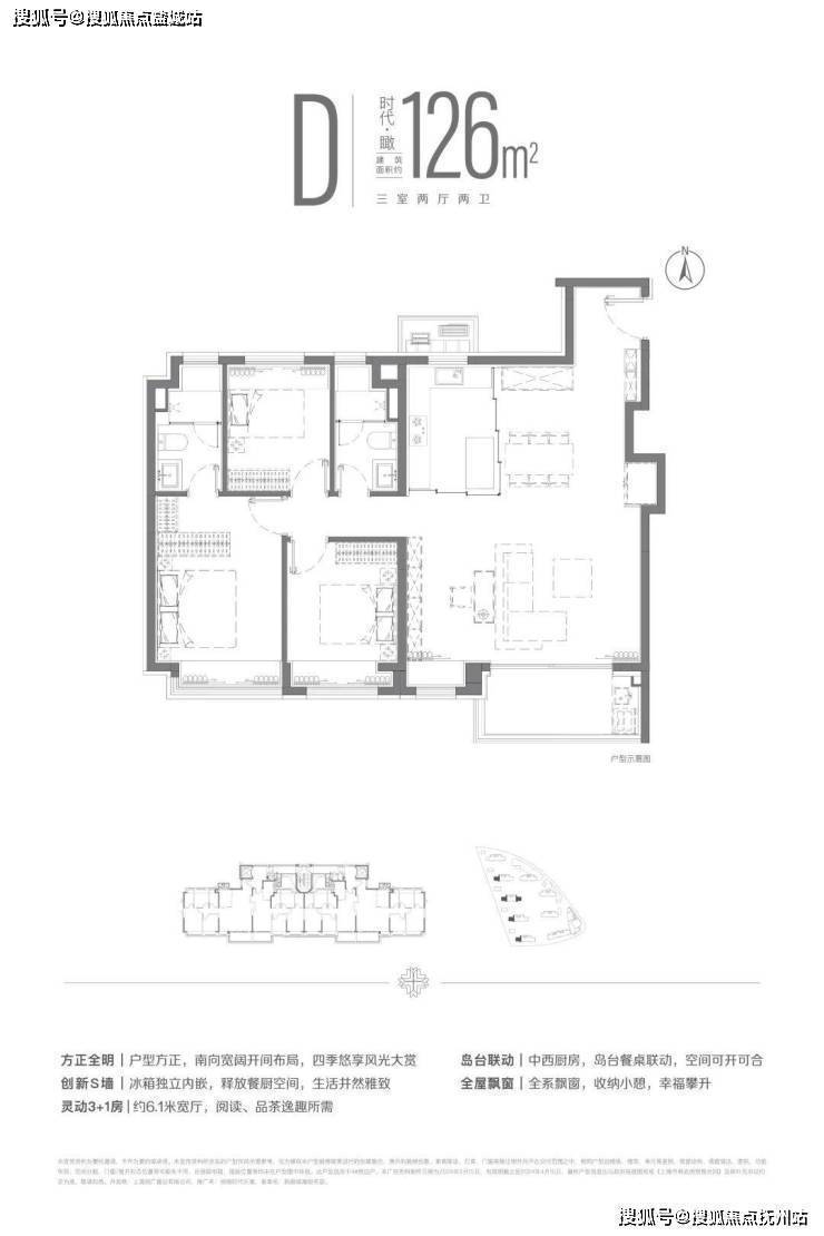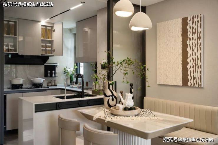 值得一提的是,项目的所有户型均配置了“S墙”设计,将冰箱空间从厨房中释放出来,而厨房采用了开放式设计,通过开合式岛台与餐厅、客厅、阳台形成LDKB一体化布局。