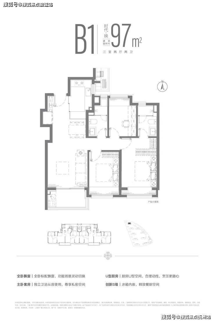 建面约97㎡的3房在建面约89㎡的3房基础上做了进阶,3房2卫的设计保证了主人从二人世界到三胎生活的全生命周期需求。