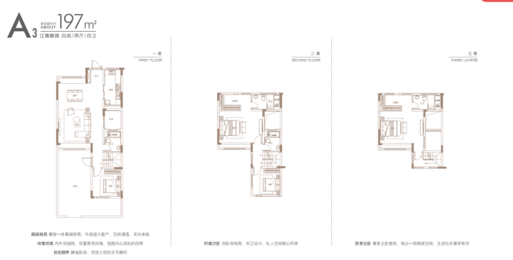 建面约197㎡滨水联排:四卫浴设计,贴心为居者考量,雍享从容的起居生活。