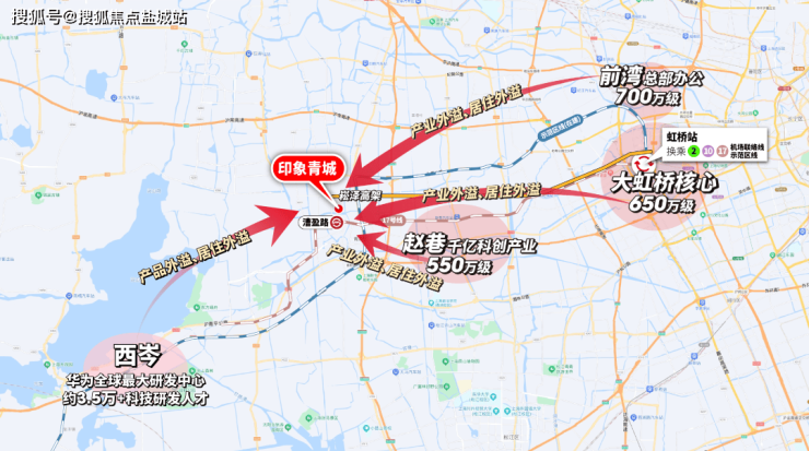 但这还不是全部,17号线+示范区线(在建)左手长三角一体化、华为,右手前湾、大虹桥总部商办,并通过虹桥枢纽,串联2号线及正在试运营的机场联络线,把市中心、徐汇、闵行、张江等高能板块都纳入印象青城的通勤版图。