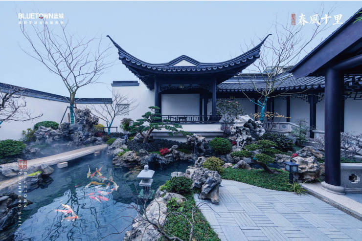 作为“美好生活综合服务商”的蓝城集团,择址安吉县城西南生态谧境,匠心打造健康生活小镇——蓝城·春风十里,地块容积率仅0.44,绿地率37.2%,营造总建筑面积约13万方山水低密住区,规划江南中式合院。