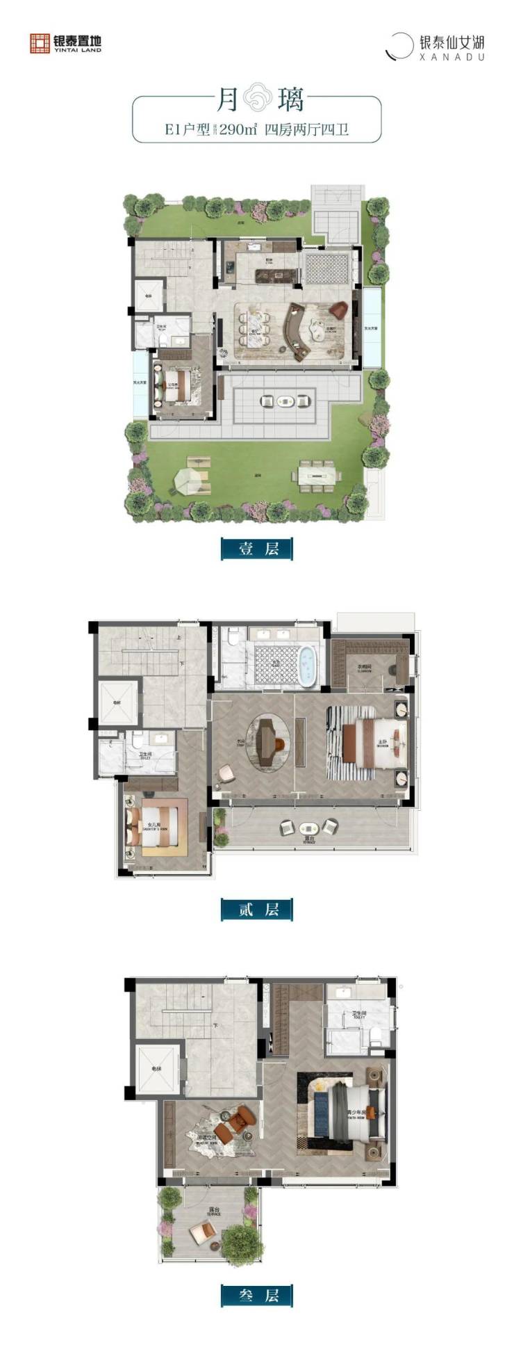 于青云之巅,觅一处静谧之隅,银泰仙女湖二期——湖晓悦墅,合院户型稀缺如珍,静待有缘之人。