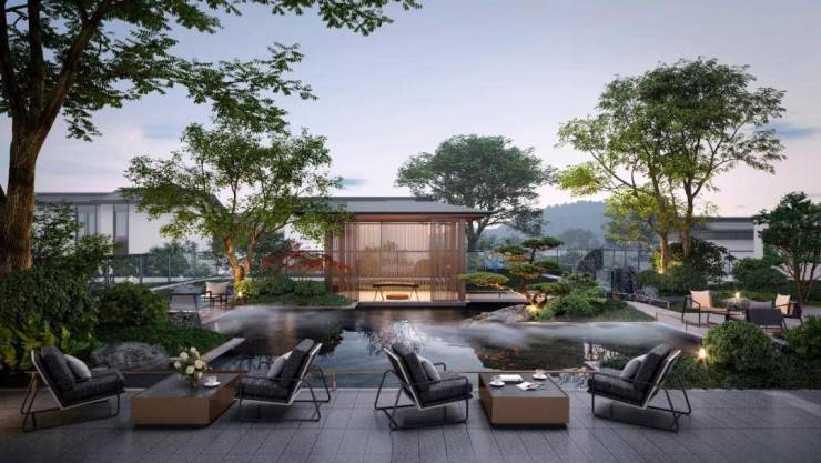 更令人心动的是,逾百平方米的私家庭院,仿佛一方缩小的山水世界,与外部的“现代版江南园林”及仙女湖的美景遥相呼应,共同构成了“内外三重山水”的绝美画卷。生活于此,层次分明,意趣盎然。