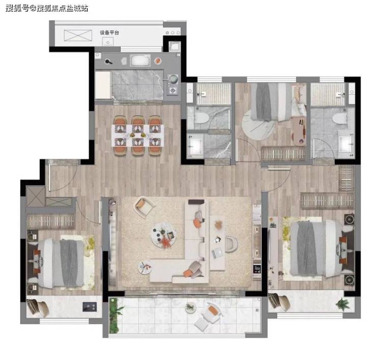 建面约97㎡的起步户型,奠定了小区纯改善的基调;最大建面约264㎡的叠墅,适合多胎家庭、三代同堂。