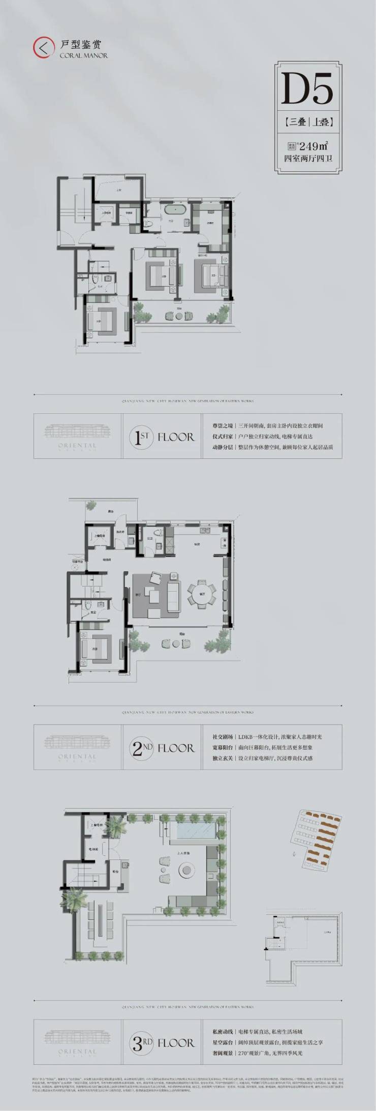 南向四大套房、走入式衣帽间,还带独立储藏室!中西双厨,配有岛台,南北双露台,被花园和露台包围;顶层超大全景露台,设有无边际泡池,露天轰趴、篝火夜宴、假面舞会……这样“奢适”的生活太美好了。