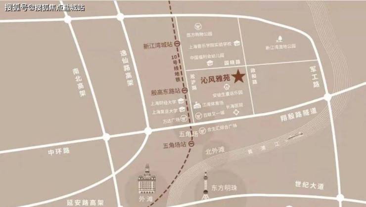沁风雅苑位于新江湾城安徒生童话公园以北,政和路与国晓路交汇处,2012年,开发商新加坡庆隆集团以6.1亿元获得该地块。