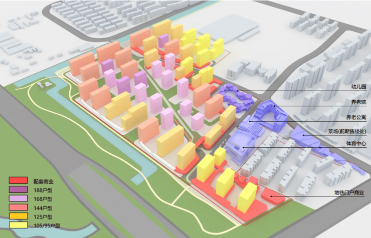 【天安1号】总用地面积17.88万㎡,由住宅、体育中心、养老公寓、养老院、幼儿园、商业组成。