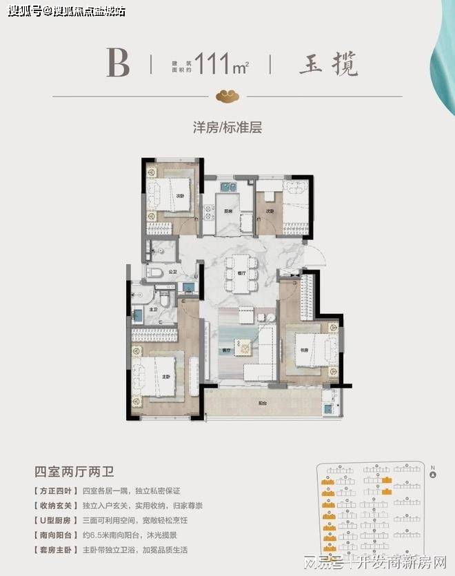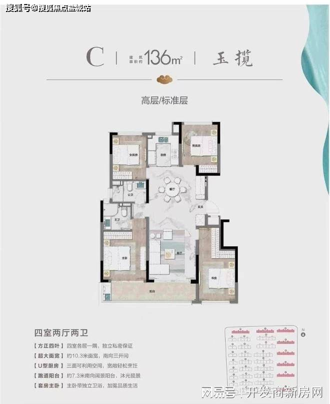 亮点4: 超高得房率,经典四叶草户型