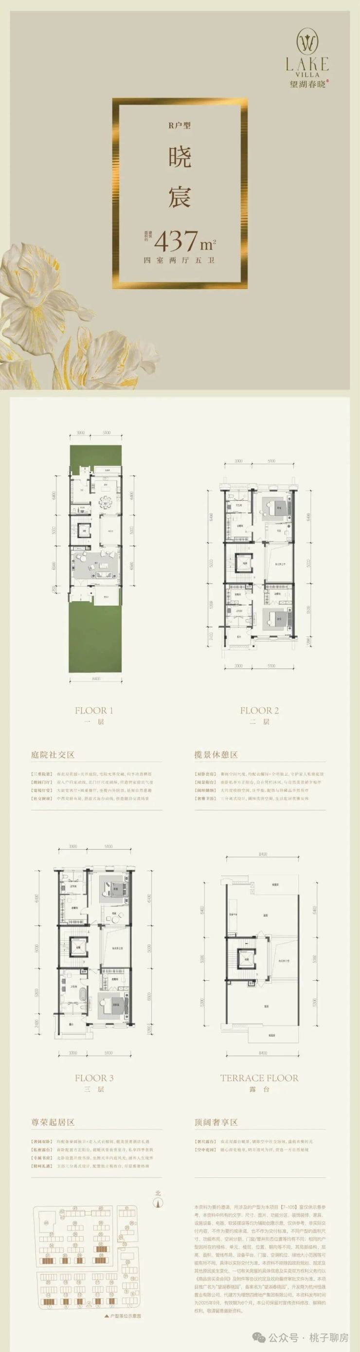 户型多样:排屋面积达437-483㎡,配备前庭后院、顶层露台、全套房设计及全明挑高地下室;洋房和小高层户型方正,空间利用率高,部分房源可享临湖视野。