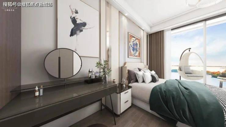不仅如此,为与室外生态院落呼应,湖湾洋房均设计有客厅和卧室的连体阳台,尺度宽阔,除了洗晒之外,还可以放画架、跑步机、瑜伽垫等等,一个多功能情致空间,伴着鸟鸣与涛声,就呈献给了有趣的生活家们。