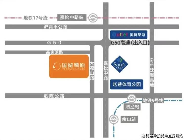 交通方面,项目距离最近的地铁站是9号线佘山站,步行有一些距离,日常出行需依赖自驾。约2.5公里即达G50高速入口,临近嘉松中路、沈海高速、嘉闵高架路等主干道,可以快速直达虹桥商务区。