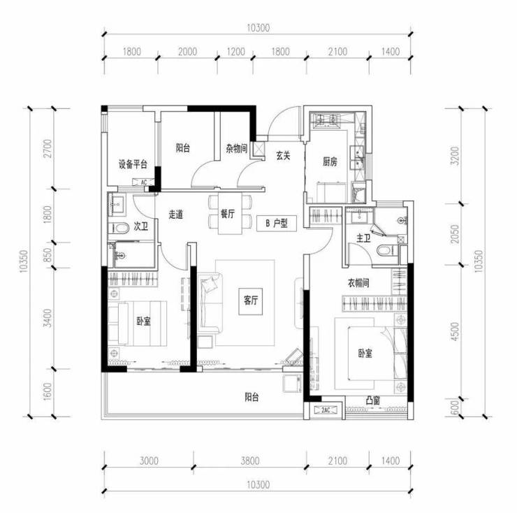 ·户型方正,功能分区明确