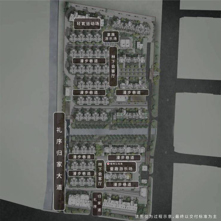 在社区内部景观的打造上,借助自然资源优势,将松江人文底蕴融入园林规划中,打造礼序归家大道、漫步巷道、林下会客厅、童趣游乐园、轻氧运动场一园五主题“都荟慢生活园林”,赋予景观更多沉浸感和参与性。