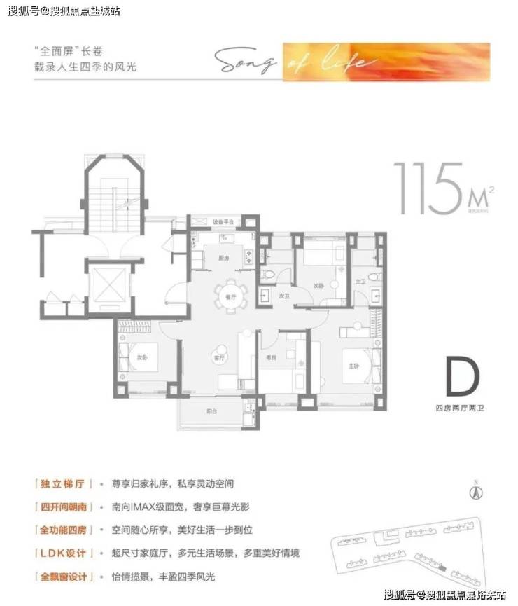 建面约115㎡4房2卫,总价预计442万起: