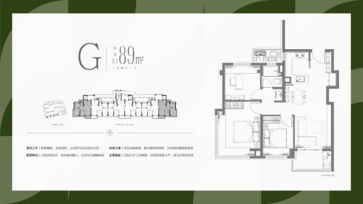 1、全部南向大面宽设计,保证最为出众的采光和视野需求;