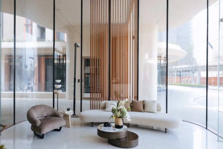 入户方面,相比2022年各大豪宅交付的毛坯大堂,天安1号的入户精装大堂尽显奢华,整个归家仪式感充满了艺术氛围。