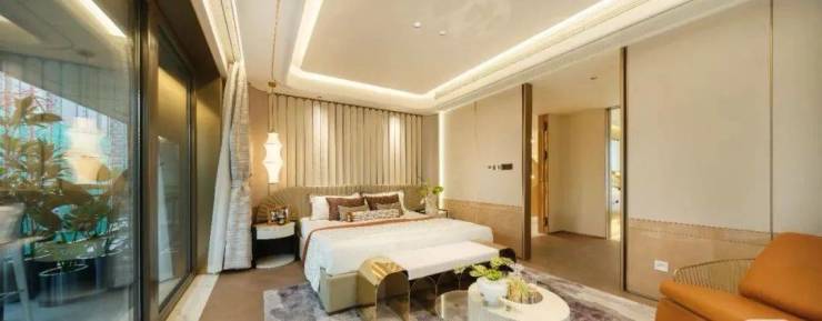 在久映颂月府的户型设计上,采用全套房设计,通过楼梯电梯空间北至,释放南向大横厅,打造餐客厨一体化尺度空间。房间内部配以大面积的暖色,与屋外之中的冷色石材墙形成对比。