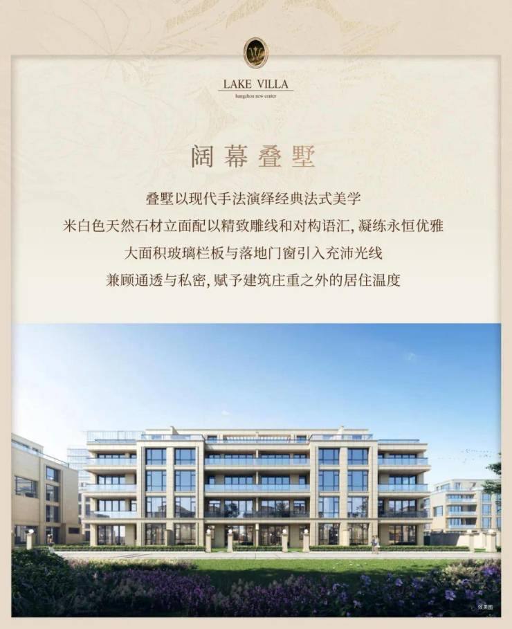 - 低密法式大宅: 规划3层法式排屋、4层阔幕叠墅、7-8层观景华宅。法式排屋主力400方起,恢弘尺度冠绝杭州,近乎绝迹,成就时代传世之作。
