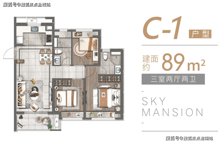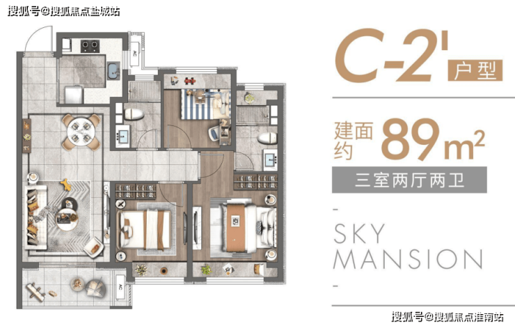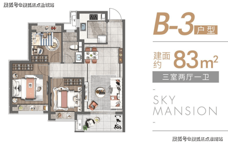 除此之外,项目还有建面约83-89㎡的3房高层户型,设计同样惊艳,并且总价更加友好。