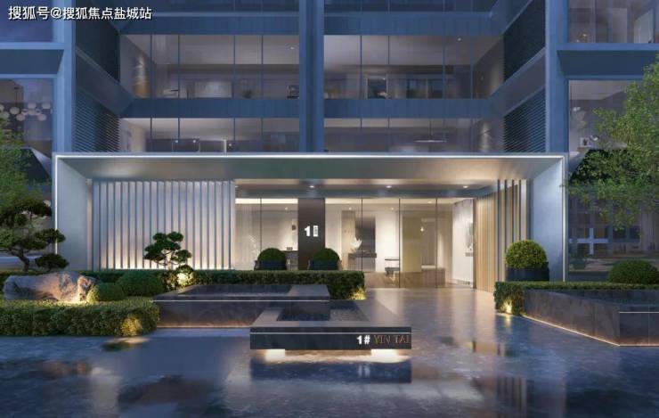 建筑立面现代挺拔,采用全铝板贴面,符合高端办公和公寓的配置,在此基础上,改造内容包括:大堂出入口、增加楼栋首层泛会所、增加公共会所泳池、优化园区标志性主入口。主入口采用干挂芬迪黑石材、普拉达绿石材、古铜色铝板等进口材料,整体现代且华贵,灯光点缀,调性高雅,近人尺度细节丰富,打造豪华入口,提升尊贵体验感。