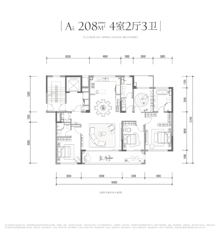 建筑面积约260平米户型。你看到的一切硬装,几乎都是交付标准:室内层高也是豪宅标准,约3.3米,双开装甲门的外侧和内侧都做了太阳放射纹雕刻,典型的客餐厨LDK一体化设计。