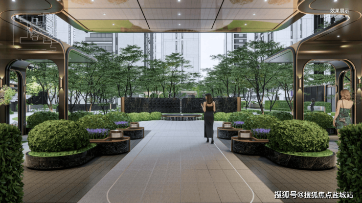 酒店式门庭颇具尊贵感,进门后就是“安缦酒店风”的景墙、植被和镜面水系。廊桥归家,四大主题花园,一步一景,营造出隐奢的度假氛围。
