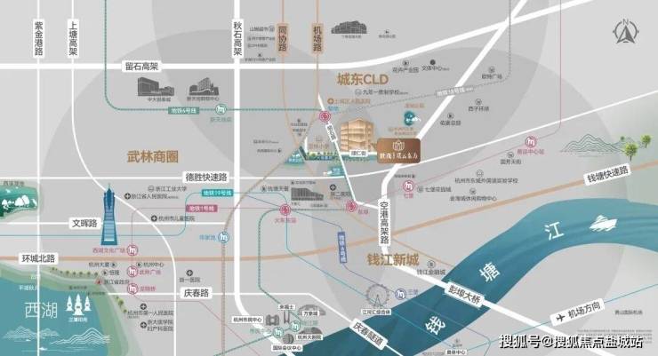 翻开地图,你会发现,璞云东方与城市核心板块紧密相连,沿着机场路一脉直达武林,走同协路直抵钱江新城二期,正处“江河汇—武林中心—钱新二期”主城黄金三角的交叠处。