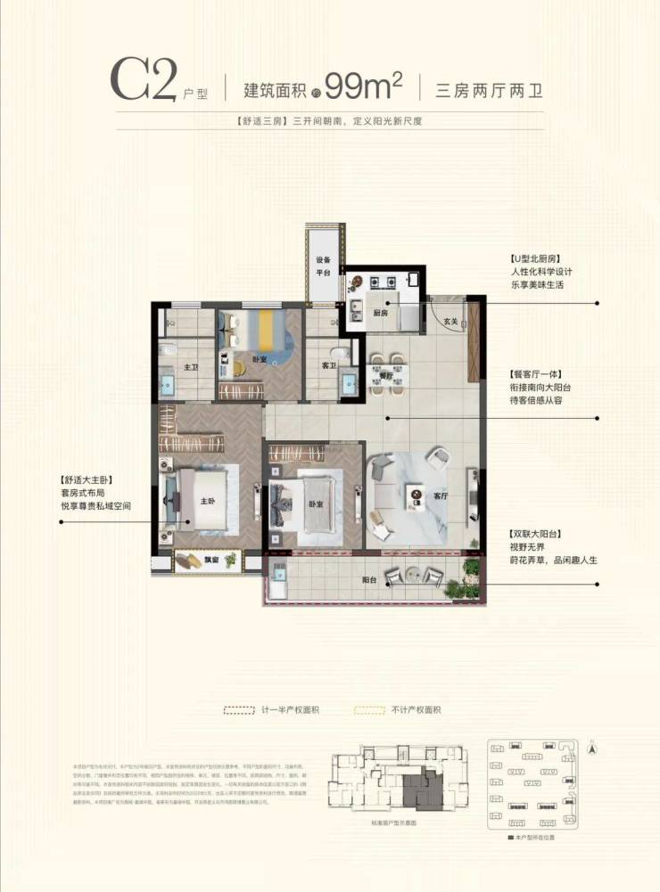 户型面积:建筑面积约76-135㎡