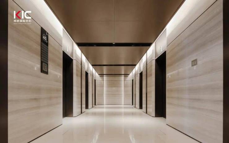【电梯厅】墙面意大利木纹石,地面卡布奇诺大理石,顶面浅古铜蜂窝铝板+深古铜不锈钢;墙面瓷砖;