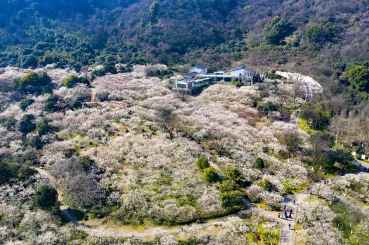 超山不仅是国家级旅游景区,更是江南三大赏梅胜地之一。每逢隆冬时节,漫山红梅如霞似锦,暗香浮动,引得八方游客纷至沓来。这座承载千年文脉的名山,自唐代以来便是文人雅士的吟咏之地。金石大家吴昌硕曾在此结庐而居,其"安得梅边结茅屋"的夙愿与传世名作《墨梅图》,为这片土地赋予了深厚的文化底蕴。如今,香雪里正延续着这份诗意栖居的理想,让现代人在梅香墨韵中,寻得心灵的归处。