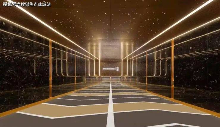 地下室公区同样出自大师设计——美国CDI创意国际设计集团,下车坡道星空顶加流线型灯带,玫瑰金属包边,两侧的墙面同样采用进口奢石,质感非凡。停车场地面采用水磨石及环氧地坪漆,不仅耐磨性更强,也更有质感。双大堂设计,仪式感必须给到位!