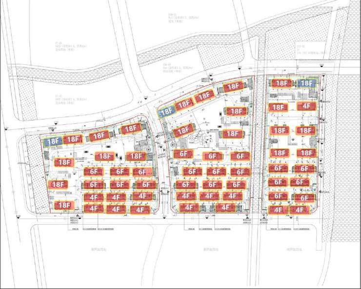 项目由北向南打造了三种不同类型的产品,北面设计为18层高层,中部设计6层叠加,南面为4层叠加,整个地块呈现北高南低布局,丰富了层次感,最大程度的保证了每种产品南向的采光及景观面。
