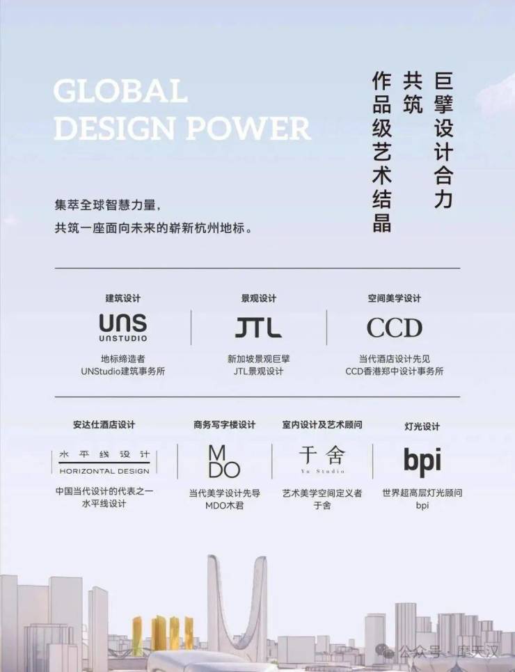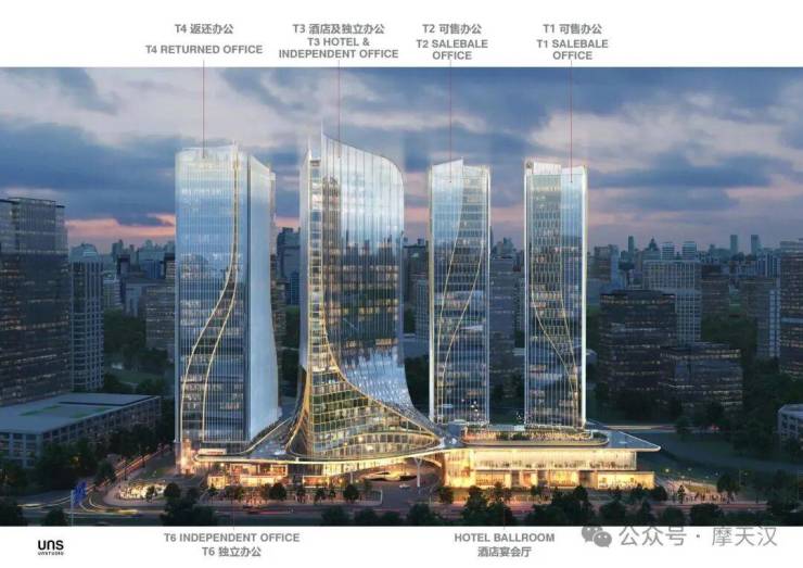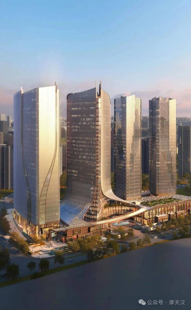 项目由UNStudio负责设计,总建筑面积26.05万平方米,由4栋140-160米塔楼簇拥奥体公园的优美景观,形成欢迎的态势,邀国内外游客共襄盛举。其中T1、T2为珍品公寓、T3为安达仕酒店、T4为办公楼。