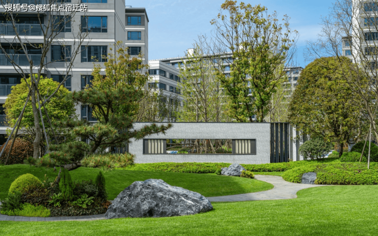 现代简约立面,恒久矗立,楼栋错落排布,与园林交相辉映,推窗即见绿树繁花、水景亭台。