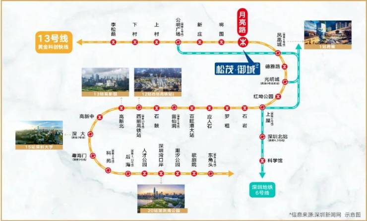 【13号线双地铁站】邻地铁13号线(预计2025年底开通),近享月亮路站与将围站,未来1站凤凰城,9站进南山,快速接驳南山科技园。