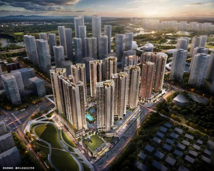 项目总建面约30万㎡,是光明少有的非超高层低密度大社区;项目二期由8座塔楼和一所幼儿园围合而成。