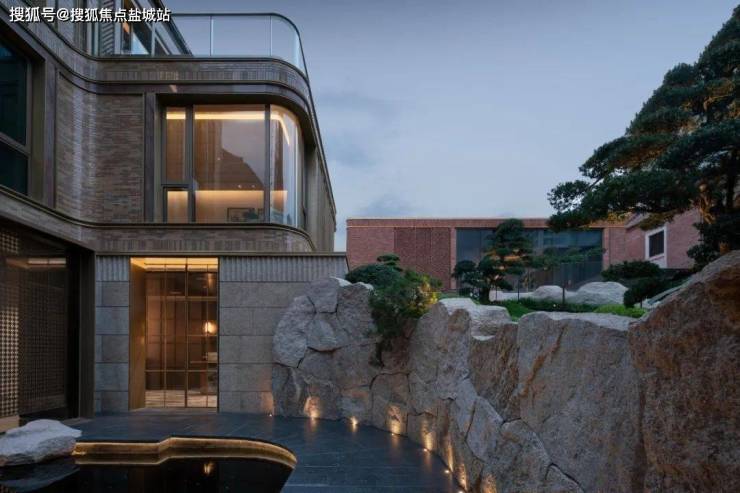 朝向庭院的建筑立面采用了大面积的折叠门和落地窗,以获得更加开放和通透的空间体验。此外,弧形转角窗的引入,不仅柔化了建筑轮廓,更满足了业主对于更广阔视野的追求。建筑本身的石材基座和金属线条,赋予了建筑尊贵感和持久价值。