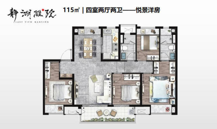 98㎡丨宽奢双阳台,精致套房,两卫从容生活。