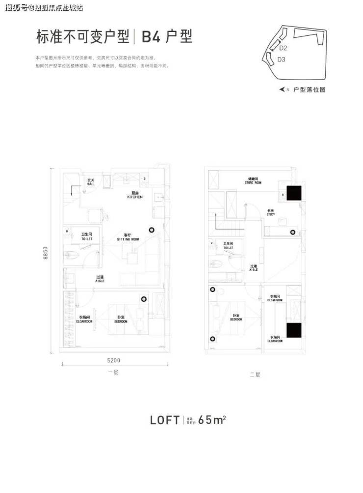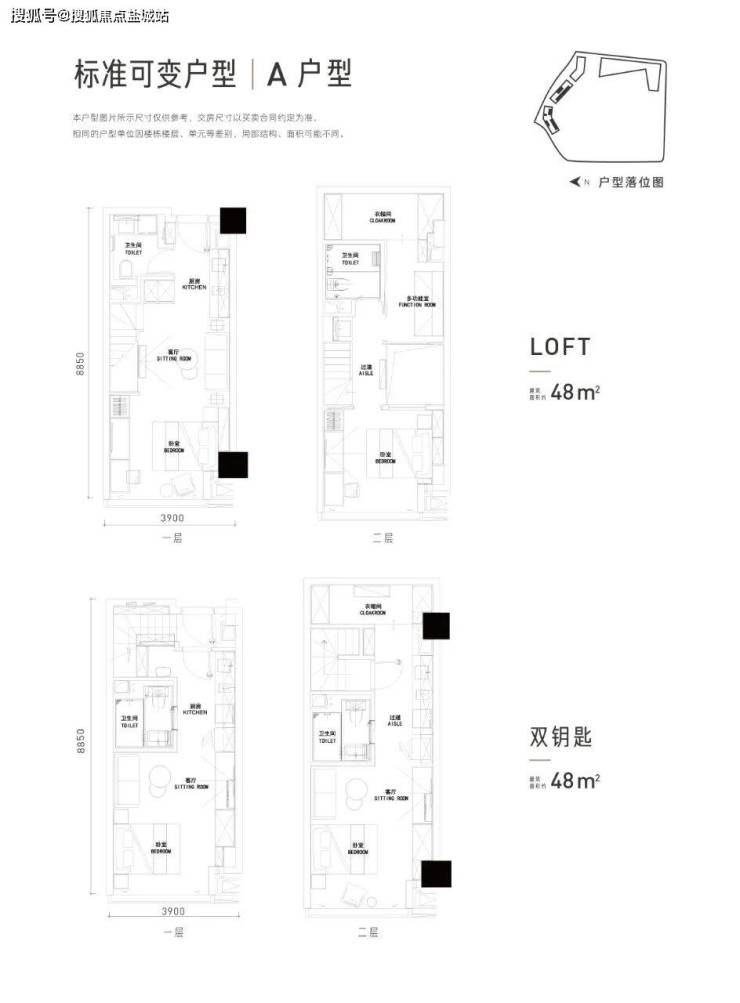 室内层高:平层层高3.1米,LOFT、双钥匙层高4.79米