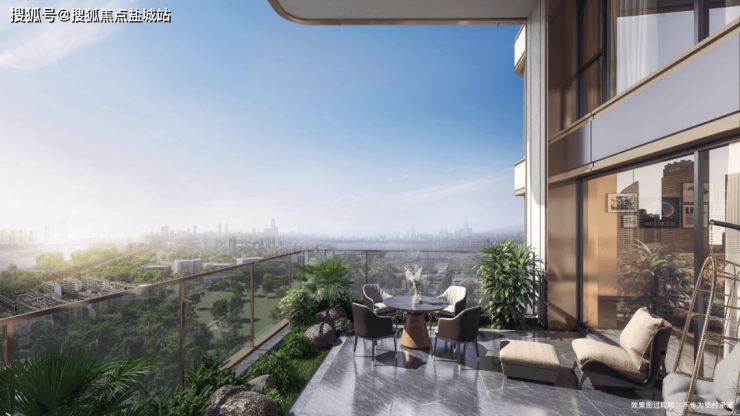 在天珺的设计上,空中露台也是一大超级亮点——约6.2 米挑高,约80㎡的露天空间,与居住区完全分离,既能举办私董宴、闺蜜下午茶,也能化身「空中花园」。