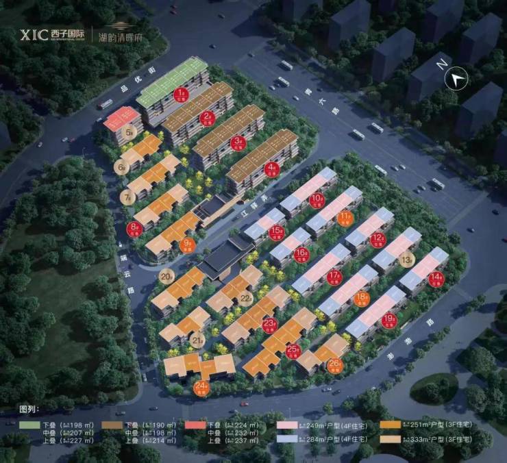 湖韵清晖府叠墅面积190-214方,总价520万起,排屋合院面积249-284-333方,总价921万起
