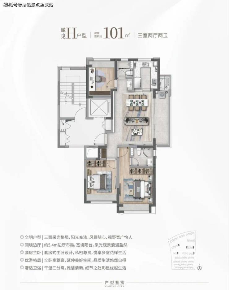 建筑面积大概 101㎡的 F&G 户型:南北通透加三开间朝南,属于深受认可的飞机户型!