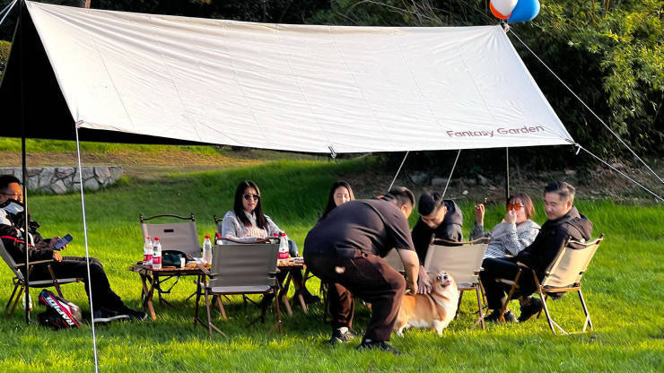 餐食水吧、签约休憩版块,外部草坪搭建了野奢营地,一个集展陈、露营、休憩于一身的生活体验空间。