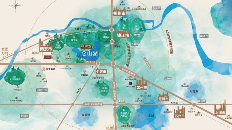 仑山湖位于经济新三角的底边中点,将自身纳入城市群为单位的区域利益共同体,区域的发展浪潮与地理红利不可估量。南京东起步,长三角生活圈辐射句容、镇江、常州、扬州直至接驳上海,绿城·湖畔雲庐在宁镇扬板块核心,共享一小时生活圈的地理红利。