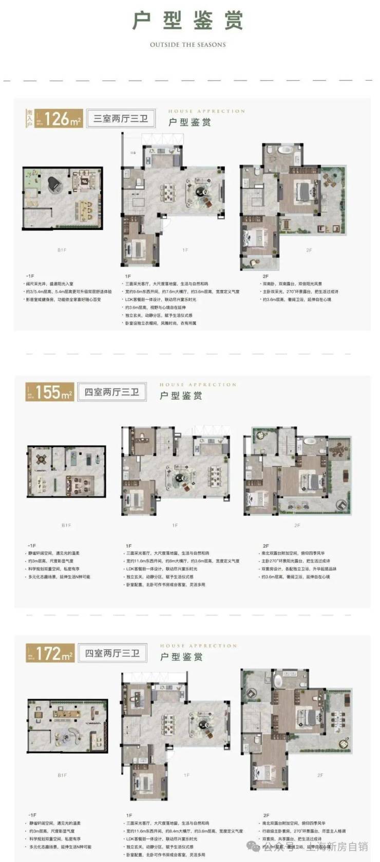 建面约126㎡、155㎡、172㎡合院