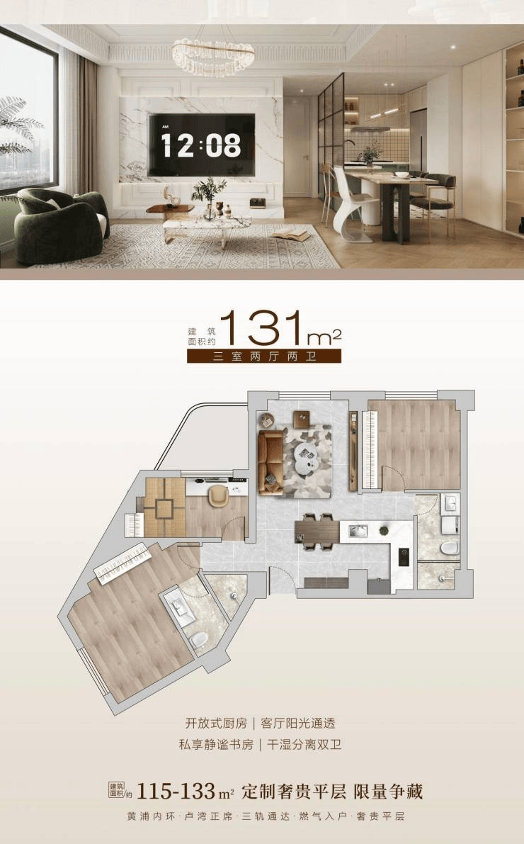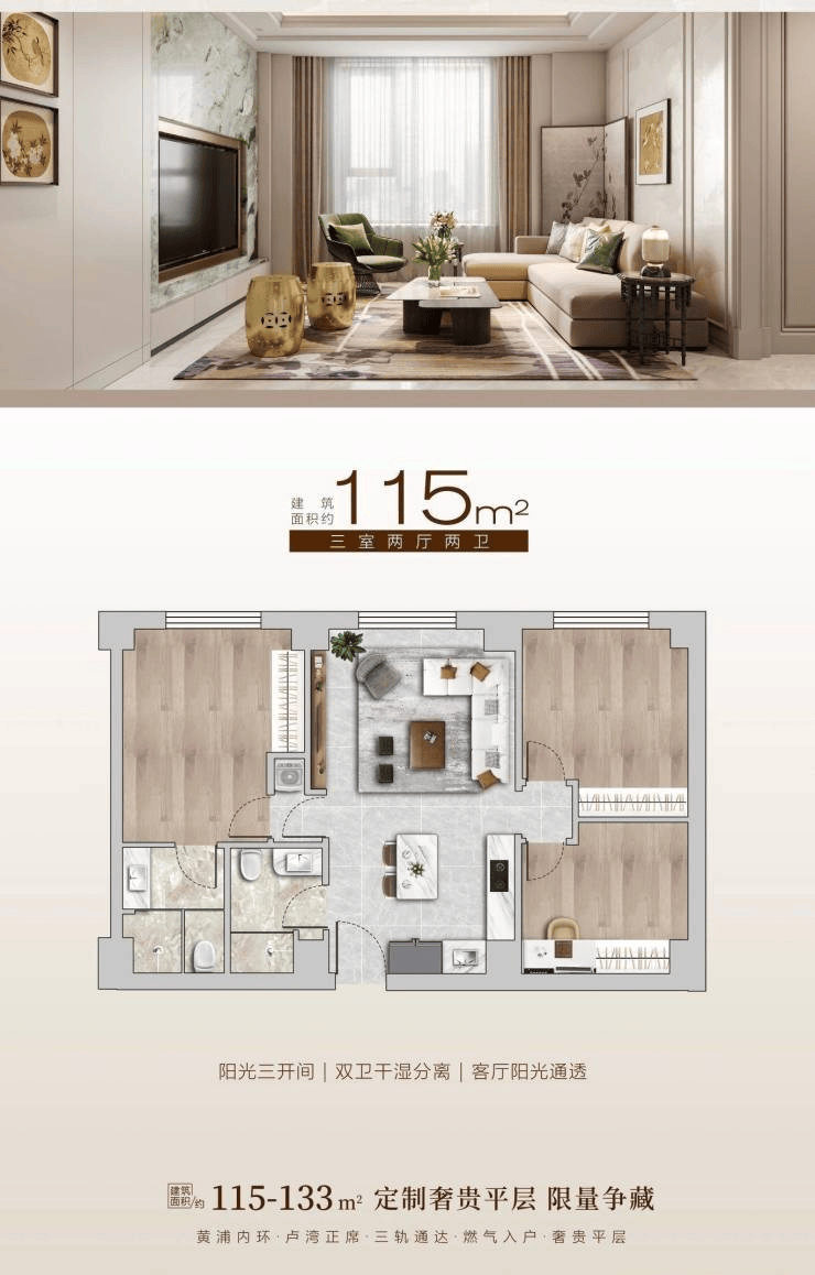 临滨江 精装修 约115-133㎡,精装通燃气公寓!