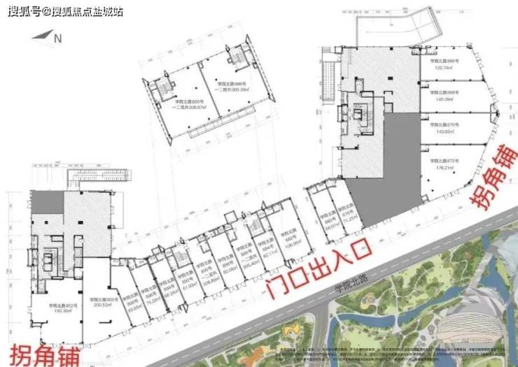 商铺户型方正,无柱子,展示面大,全落地窗视野。得房率98%左右,利用空间大;