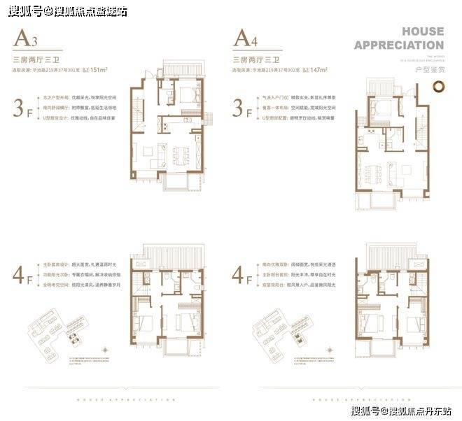 上叠户型,共有三个主力户型,建面约155㎡、151㎡