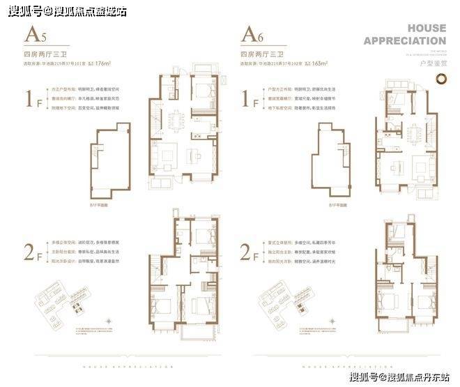 下叠户型,共有三个主力户型,建面约155、163、176㎡下叠。