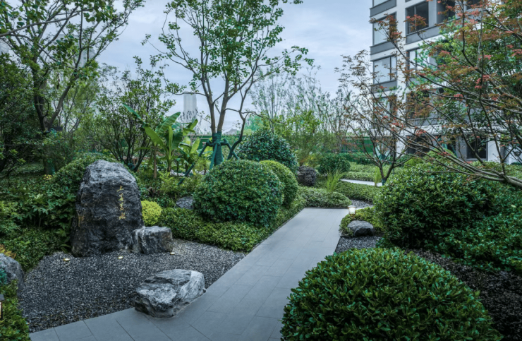 走出营销中心,进入后场的宅间庭院,泰兴新城湖畔天境让回家的每一步,都成为如诗如画般的品瞻。光影下,充满静谧,平日里和友人在此闲坐聊天,赏花品茗,吹着温暖的风,看着斑驳的树影,享受午后的惬意。